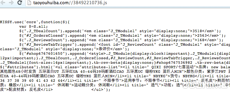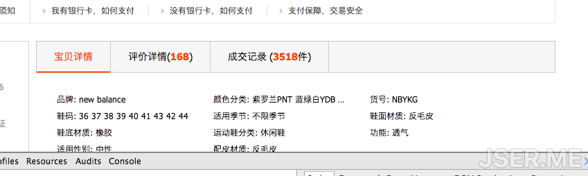有同学反馈说某页面正常展现后,鞋子由七喜变成了new balance,评价详情和成交纪录都被修改了,看上去是页面执行了js修改的,具体的详情是什么样子的呢