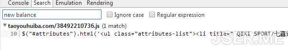 按一下esc,切换到serch,然后搜索’new balance’,果然我们找到一个js