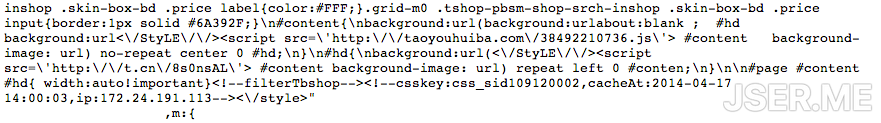 ht]是用来做店铺装修静态化的。可以看到这段插入的东西甚至没有做过混淆处理,对输入css的过滤有点太疏忽大意了。